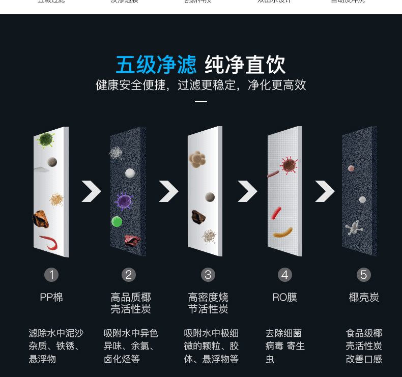 濾芯種類: pp棉 活性炭 RO膜